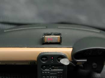 グローブケースにはステッカーが貼ってあります。 これは雰囲気でペイント。 本来車体後部に付いているRoadsterプレートが なぜかここに付いているので、キット付属の デカールもここに貼ります。 あッ、字の色が違う! |
