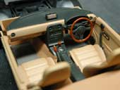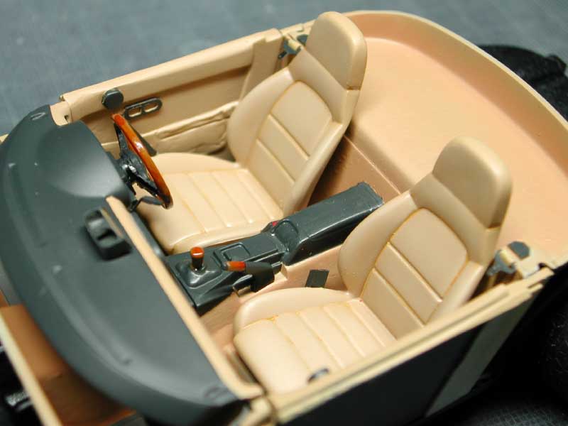 起毛のフロアと本革のシートでは全然材質が違い、 色も若干違うんですが、模型になると同じように 見えてしまいます。 フロアには溶きパテを塗って表面を荒らしてあります。 また、色見やツヤも変えていきます。 |