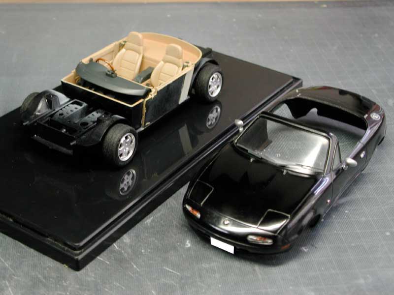 ウインドウやミラーなど塗装を終えた各パーツを 接着してボディも完成。 完成品はGalleryでどうぞ。 |