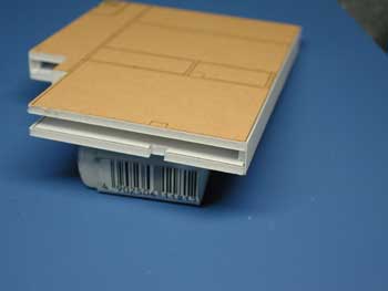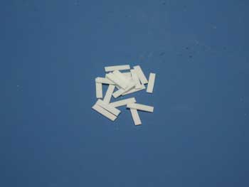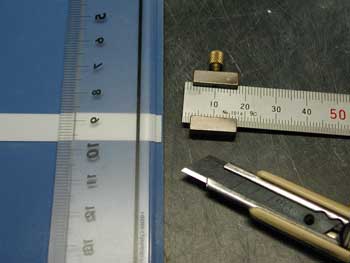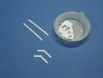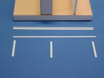 ここは使い慣れたいつもの素材、プラ板の出番。 均一な細切りをたくさん用意します。 |