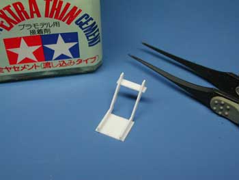 流し込み接着剤で板を一枚ずつ貼っていきます。指ではもう摘めないのでピンセットです。 |