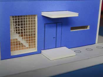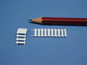 手すりをつけます。 エバーグリーン社の細切りプラ材を使いました。 |