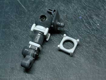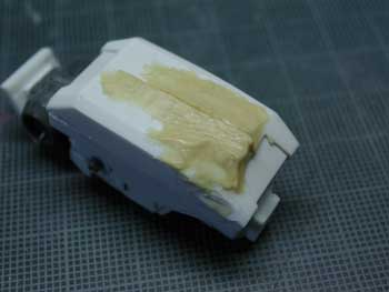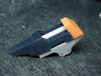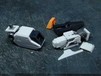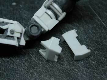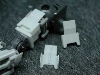 肩のインナーパーツも改造が必要です。 プラ材で延長し、スラスターブロックを上にずらして接着。 |