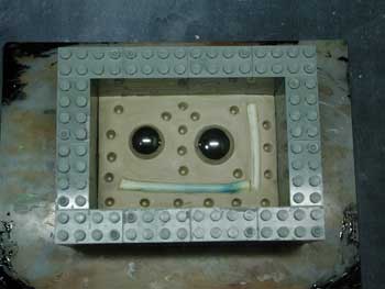 突然ですが金属球を型取り。 大きい方は右手に握るサザビーのコクピット、小さい方はこのνガンダムのコクピットです。 |