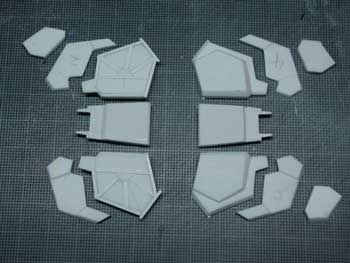 上腕と肘に付く装甲。 0.5mmプラ板の箱組です。 (11/9) |