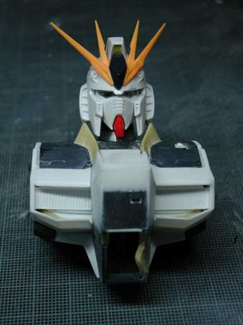 側頭部とトサカはけっこう削ってるんですけどね。 あと、バルカンの排夾ポートをバレルと同軸にもってきます。 (12/6) |