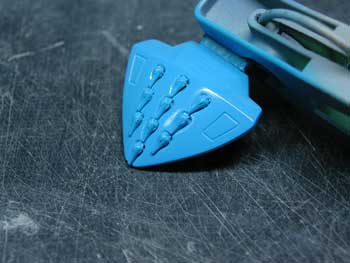 カラーリングはちょっとアレンジ。 基本色・白の他は赤系ではなく、ブルー系にします。 ここは本来紫の部分。シルバーを吹いて・・・ |