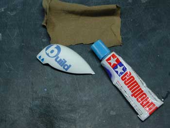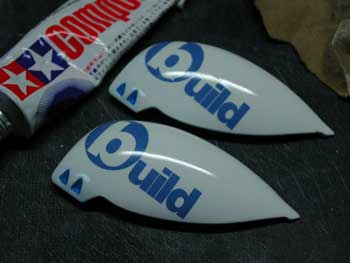 続いて研磨。 最近やっと悟りました。とりあえずこれで充分なんです。 タミヤのチューブのコンパウンドに、布はTシャツの切れっ端。 これでホントに満足できなければ、高価なものを使えばいいのです。 |